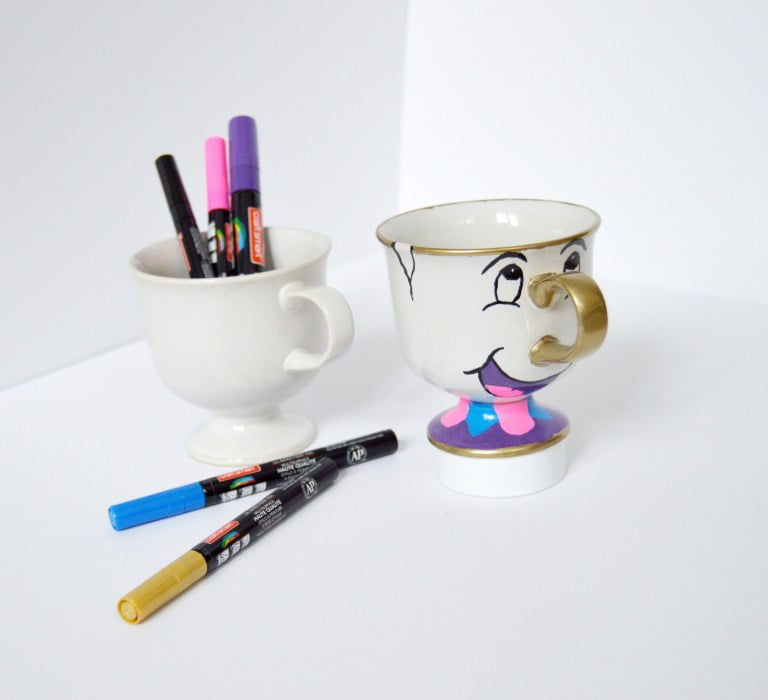 reenactment of Beauty and the Beast premiering soon, there is no better time to celebrate than with a Beauty and the Beast inspired chip sharpie mug. If you really want to get into the spirt of Belle and all the other magical characters from the movie, have a Beauty and the Beast inspired party! This craft is a great way get excited for the new movie and it is perfect for any age! Find the complete instructions here from the blog, A Pop of Red.